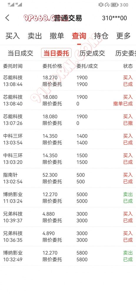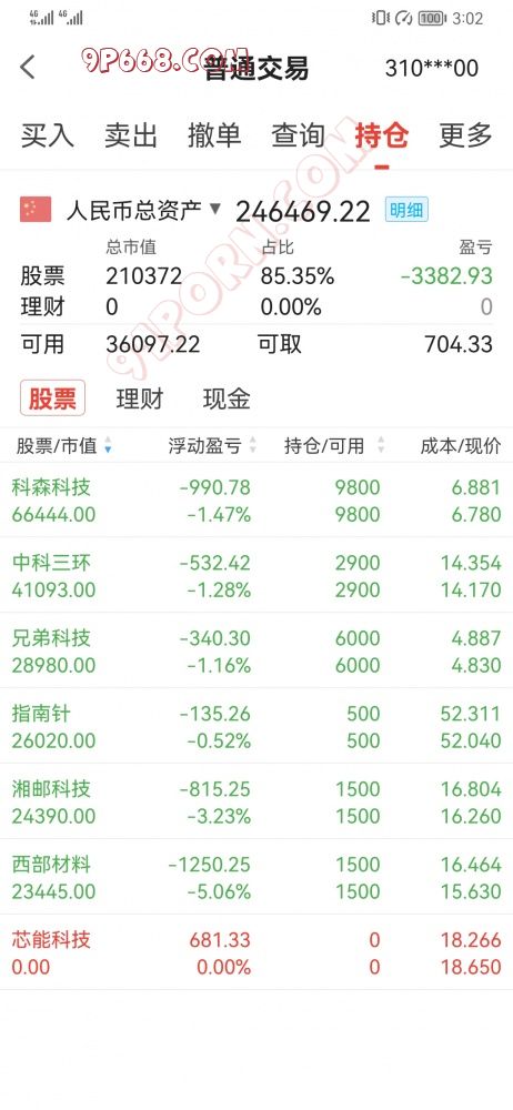 本来计划指南针、中科三环、芯能科技盈利就清仓,没有达到目标,上午无操作